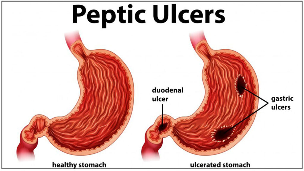 पेप्टिक अल्सर या गैस्ट्रिक अल्सर अमाशय या छोटी आंत के ऊपरी हिस्से में होता है। यह तब बनता है, जब भोजन पचाने वाला अम्ल अमाशय या आंत की दीवारों को नुकसान पहुंचाने लगता है। पेप्टिक अल्सर पेट या ड्यूडिनल में होता है। यह दो प्रकार का होता है, पहला गैस्ट्रिक अल्सर और दूसरा ड्यूडिनल अल्सर। अल्सर होने पर पेट दर्द, जलन, उल्टी और उसके साथ ब्लीडिंग होने लगती है। कुछ समय बाद अल्सर के पकने पर यह फट भी जाता है। इसे परफॉरेशन कहते हैं।