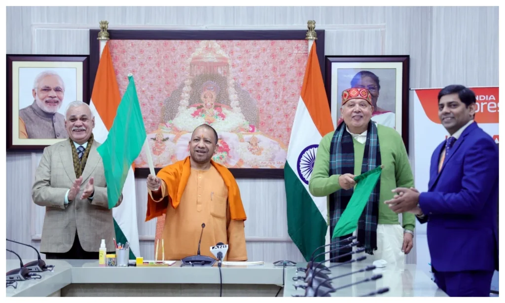 योगी ने कहा कि 30 दिसंबर को प्रधानमंत्री ने अयोध्या के महर्षि बाल्मीकि इंटरनेशनल एयरपोर्ट के लोकार्पण कार्यक्रम को संपन्न किया। प्रसन्नता हो रही है कि एयरपोर्ट के उद्घाटन के साथ ही दिल्ली, मुंबई और अहमदाबाद के साथ वायु सेवा के उपरांत अब कोलकाता और बेंगलुरू के लिए भी एयर इंडिया एक्सप्रेस की यह वायुसेवा प्रारंभ होने जा रही है।