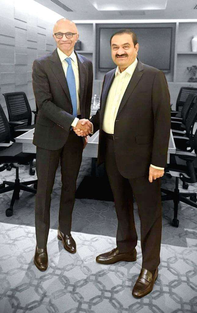 अदाणी ग्रुप के चेयरमैन गौतम अदाणी ने बुधवार को जानकारी देते हुए बताया कि वे माइक्रोसॉफ्ट के चेयरमैन और सीईओ सत्य नडेला से मिले और उन्होंने टेक्नोलॉजी के भविष्य को लेकर आर्टिफिशियल इंटेलिजेंस की अपार क्षमताओं पर बात की।
